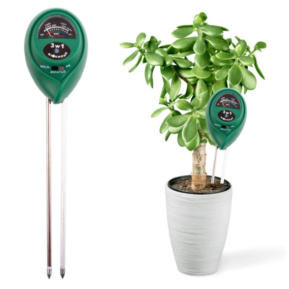 Urządzenie służące do pomiaru pH, wilgotności gleby oraz nasłonecznienia. Czujki znajdują się na końcu szpikulców. Odczytu dokonuje się na skali znajdującej się w plastikowej obudowie. Urządzenie nie wymaga użycia baterii.